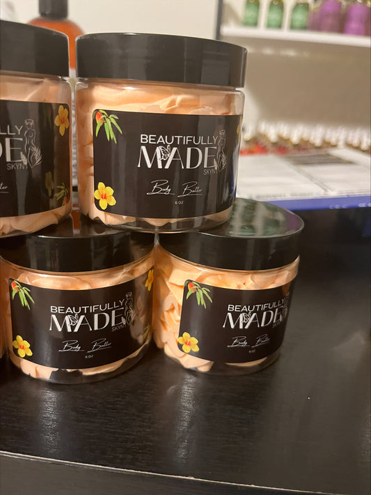 Our body butter is a healthy blend of nourishing ingredients, formulated to provide intense hydration and a velvety softness that lasts. Enriched with a harmonious fusion of natural extracts, vitamins, and moisturizing oils, our whipped butter offers a deeply replenishing experience. Whether you're looking to combat dryness, soothe irritated skin, or simply treat yourself to a moment of self-care, our body butter is designed to cocoon your skin in a luscious layer of indulgence.